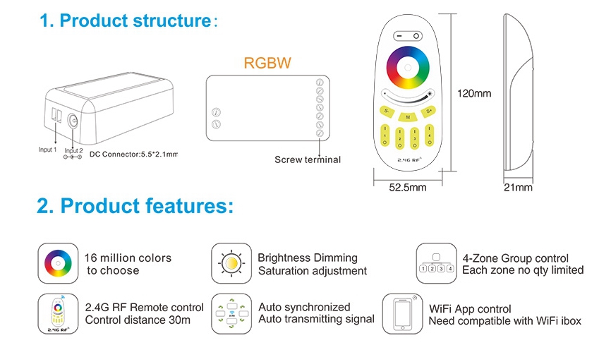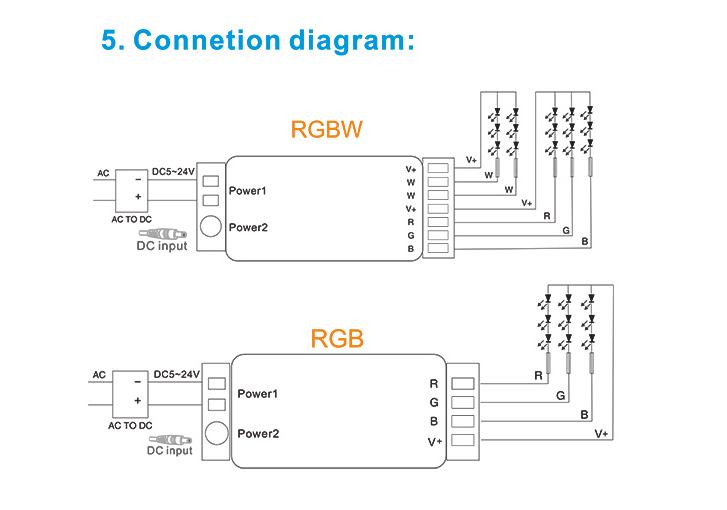 - Controller’s input voltage is DC5-24V, other input voltage are not allowed, Please do not overload, the total max output current is 12A;