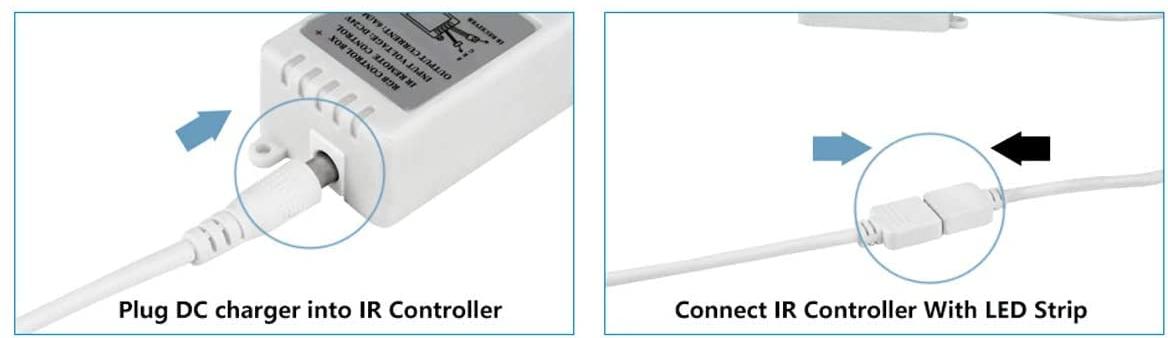 Load output interface: Adopt oblate 5 pins interface.the channel near the arrow is the common V+, the second channel is the White light channel, and the three to five channel are R,G,B channels in sequence .