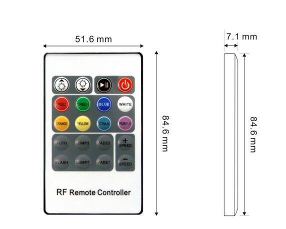 Aluminum RF 20 Keys RGB controller adopted the advanced computer control chip. Its mainly used to controlled all kinds of constant voltage led lights,such as:LED source, LED strips,led wall washer,wall Glass curtain lights,etc.It integrated with easy connection,simple manipulation and power off memory function.User can choose the 7 color jump, fade,fash mode ,and the lights brightness are adjustable according to the user actual requirement.