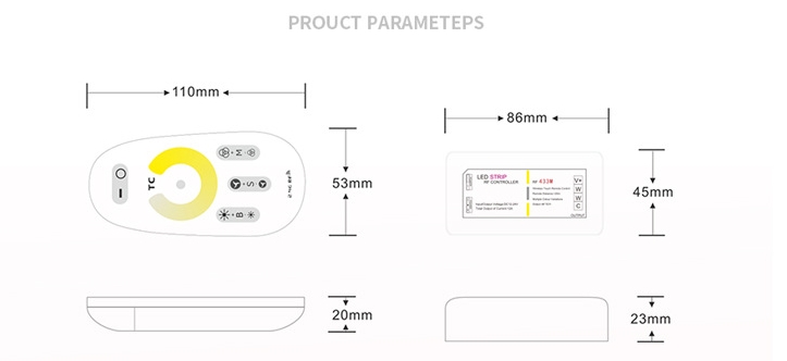 RF 2.4G CCT LED touch remote controller, which is adopting the most advanced PWM control technology, controlling all color temperature LED products with Four lines and three circuits( common anode),owning 14 automatic changing modes to choose.