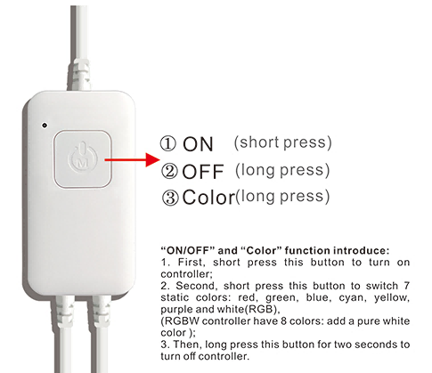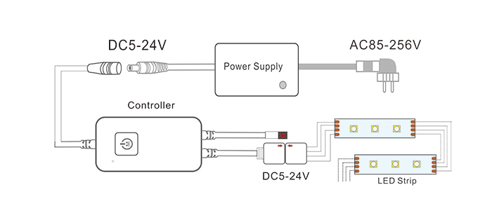 Connecting controller and output led light first, then connect the power supply , to ensure no short circuit between the cables before power on,supply voltage is DC5-24V, do not input on other voltage.